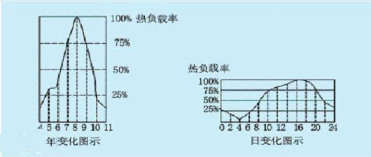 1、電信機(jī)房空調(diào)的配置往往大于實(shí)際所需制冷量(考慮機(jī)房的擴(kuò)容需要及可靠性要求,在設(shè)計(jì)時(shí)有較大的設(shè)計(jì)余量),而由于環(huán)境溫度、機(jī)房設(shè)備的投入量等因數(shù)的變化必然使所需的制冷量在較大的范圍內(nèi)變化。圖1示出一般空調(diào)熱負(fù)載率變化的情況:
